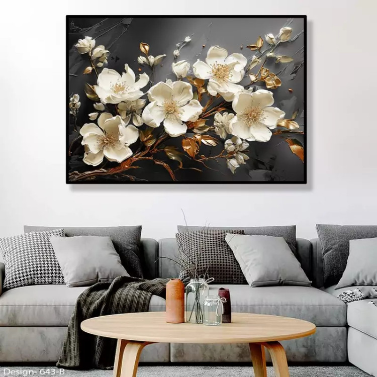 تابلو دکوراتیو مجموعه گلهای سفید با زمینه طوسی