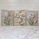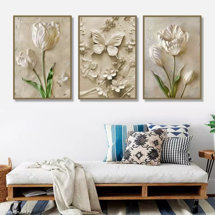 تابلو دکوراتیو مجموعه گل و پروانه سه تیکه منظم