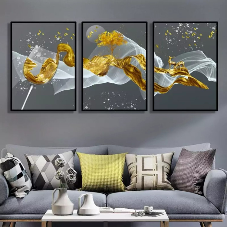 تابلو دکوراتیو گوزن ها وجام طلایی سه تیکه منظم