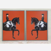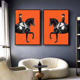 تابلو دکوراتیو لاکچری سوارکار با زمینه نارنجی دو تیکه منظم