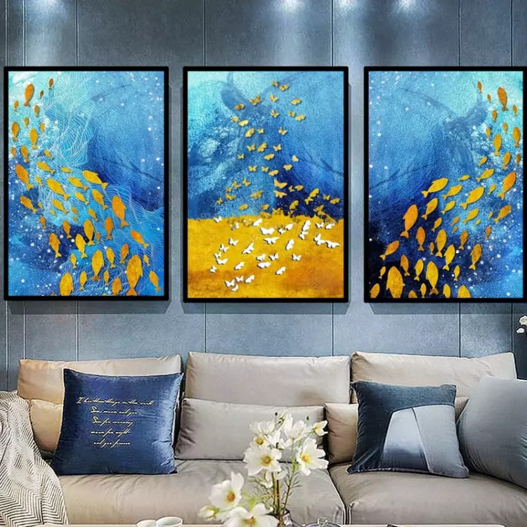 تابلو دکوراتیو مدرن رقص پروانه و ماهی سه تیکه منظم