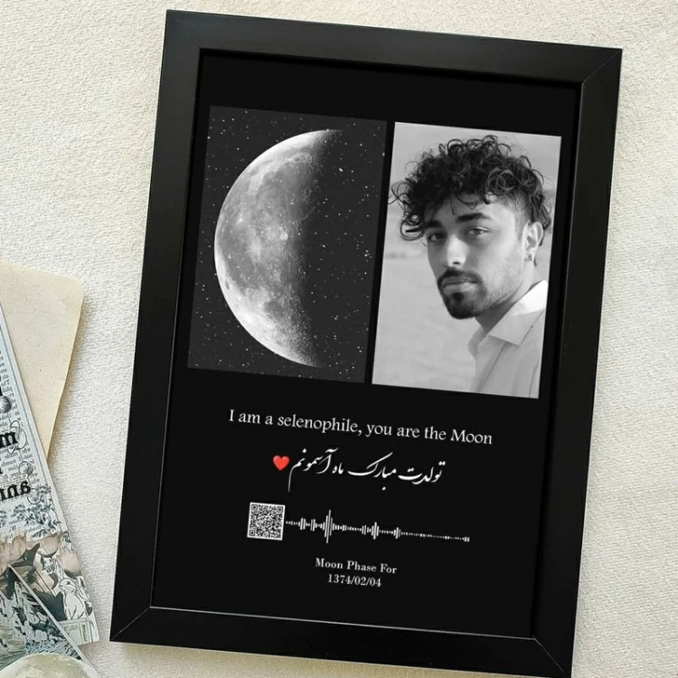 قاب عکس تابلو موزیکال دیجیتال بارکددارطرح ماه وچهره(طراحی رایگان)
