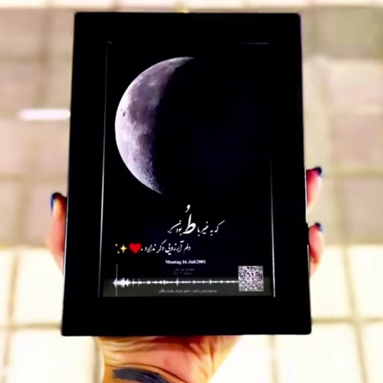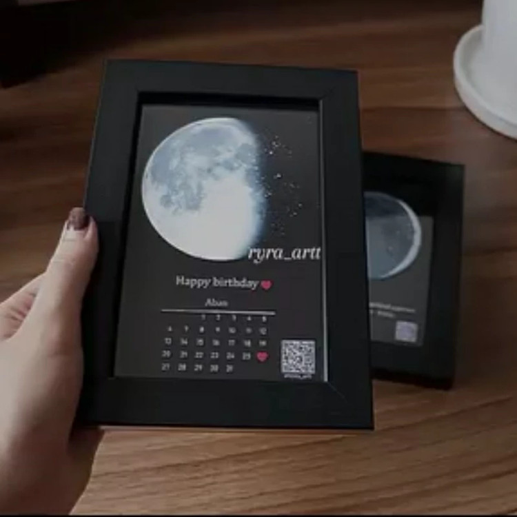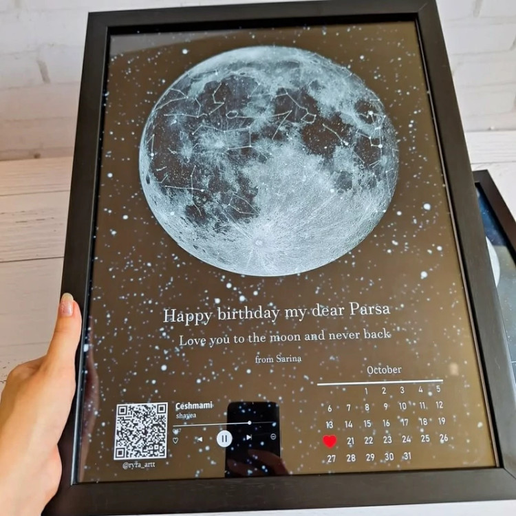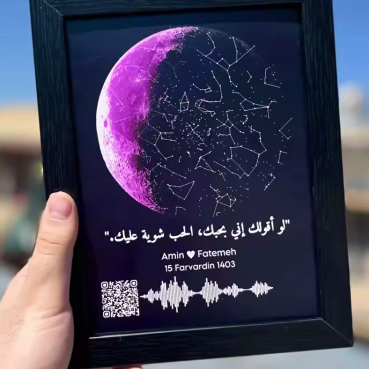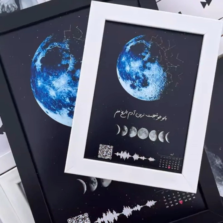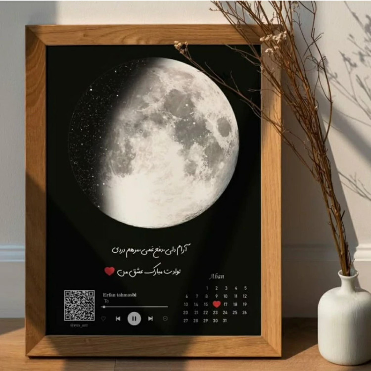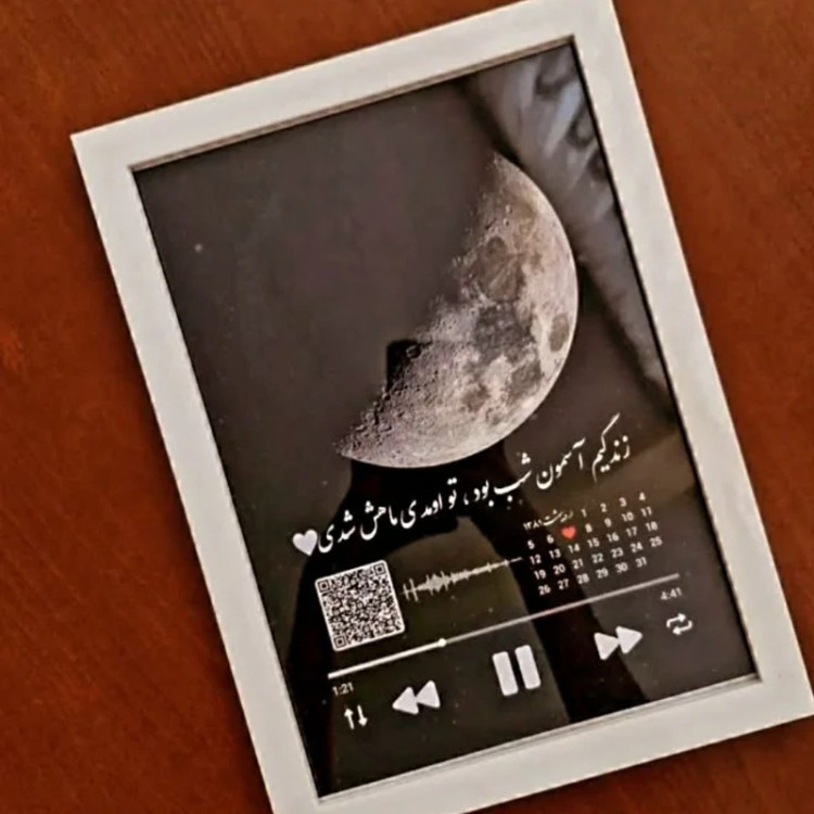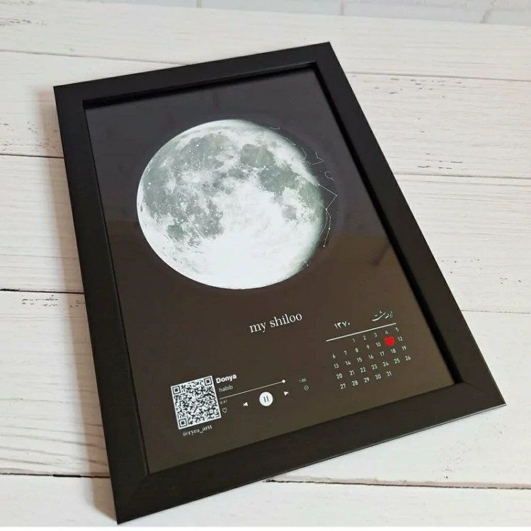 تابلو قاب عکس موزیکال بارکددارطرح ماه شب تولد