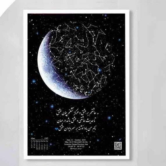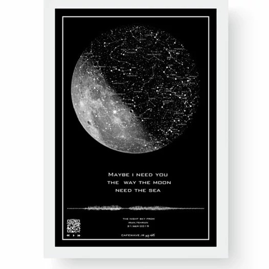 قاب عکس تابلوموزیکال بارکددارباطرح آسمان شب باپس زمینه مشکی سرمه ای