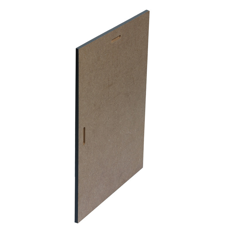 جهت سهولت در نصب تخته شاسي بر روي ديوار شيارهايي در پشت کار در راستاي عمودي و افقي ايجاد شده است. لبه بيروني تخته شاسي با استفاده از نوار پي وي سي پوشش داده مي شود تا در هنگام ضربه خوردن، گوشه و لبه ها آسيب نبيتد و از استحکام بالايي برخوردار باشد، معمولا اين نوار ها در دو رنگ مشکي يا سفيد مي باشد.