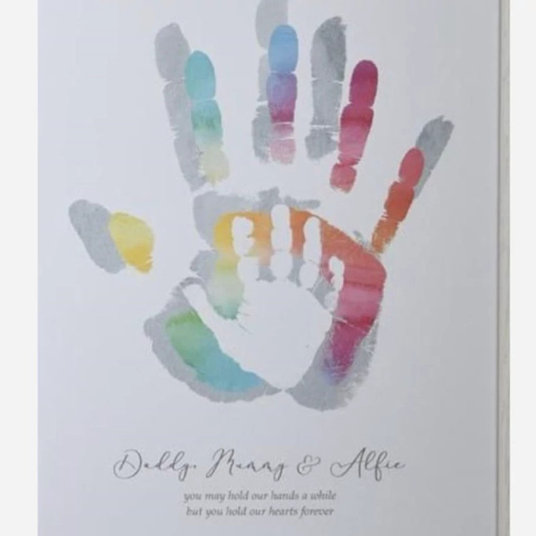فقط کافیه با آبرنگ دست خودتون و فرزندتون رو با رنگی که دوست دارید رو روی یه کاغذ سفید که ابتدا اثر دست پدر یا مادر حک بشه و بعد اثر دست فرزند و بعد ایکنه کاملا خشک شد یا خوده برگه رو برامون بفرستید یا ازش عکس بگیرید فایلشو بفرستید که متن یا تاریخ و هر چیزی که دوست داشتید رو بهش اضافه کنیم