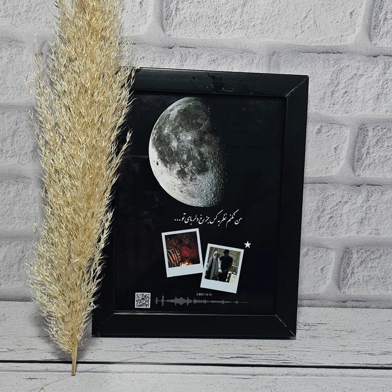 یه سفارش دیگه داشتیم از طرح پر طرفدار💜 یکی از شما مشتریای عزیز سفارش داد که ماه شب آشناییشون بود به همراه متن و یه آهنگی که خیلی باهاش خاطره داشتن🥰🥰 و نتیجش شد این قاب قشنگ❤️