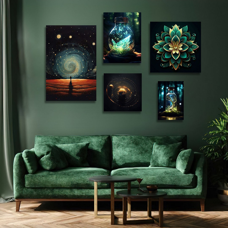 تابلو شاسی بکلیت طرح آسمان شب و گل مدل SH-1207 مجموعه 5 عددی