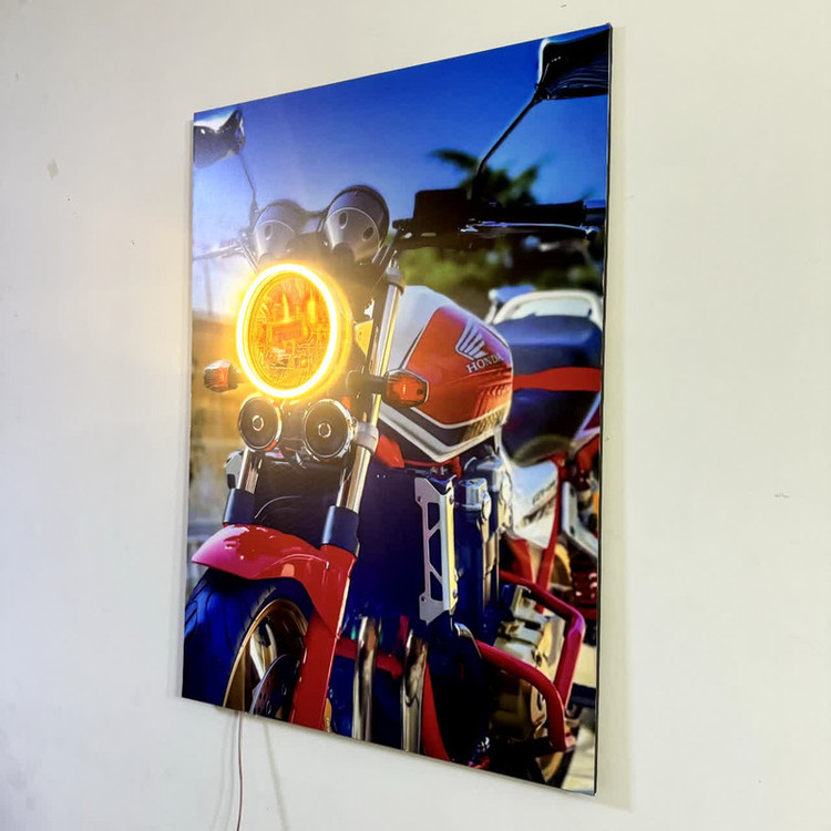 تابلو شاسی نئونی طرح موتور cb1300 با ابعاد 50*70 و شاسی ضخامت 8میلی متر و لبه pvc مشکی به همراه آداپتور و چاپ سیلک با کیفیت بدون افت کیفیت و ماندگاری بالا می باشد.