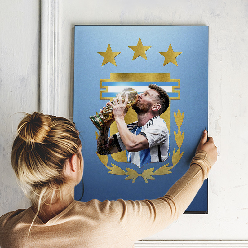 تابلو شاسی دیکوماس طرح بوسه لیونل مسی بر جام جهانی مدل NC109