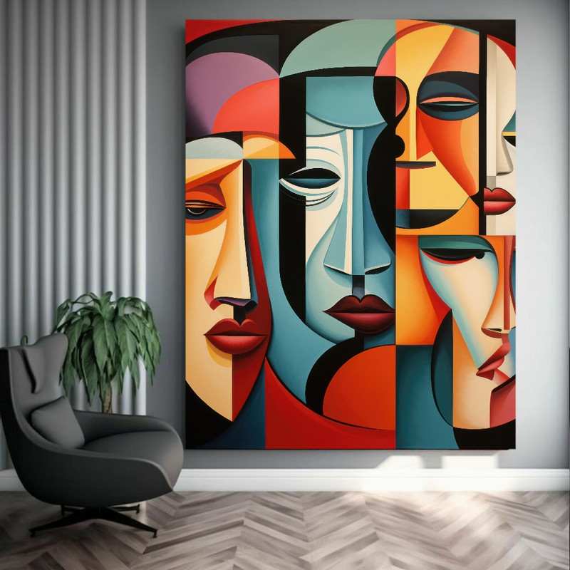 تابلو بوم طرح مخمل کوبیسم چهره کد FP105070