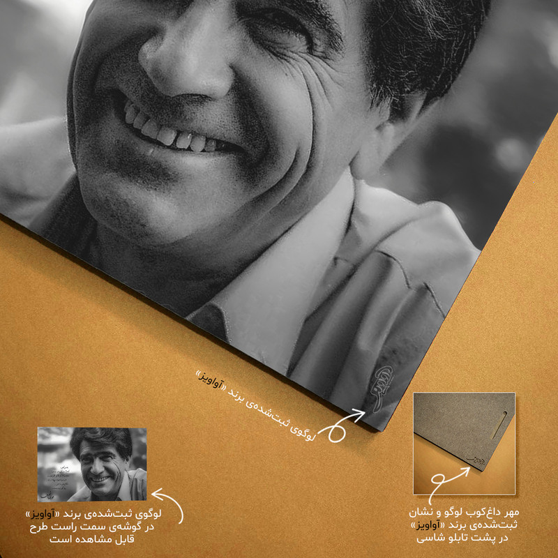 طرح این تابلو شاسی به صورت اختصاصی توسط تیم طراحی برند رسمی و ثبتشدهی «آواویز» طراحی و منتشر شده است. در کلیهی محصولات این برند که شامل طرحهای هنری و گرافیکی زیبا از مشاهیر سرشناس ایران و جهان هستند نام لوگوی برند آواویز در گوشهی سمت چپ یا راست طرح وجود دارد. همچنین در پشت تابلوشاسیها لوگوی این برند به صورت داغکوب حکاکی شده است.