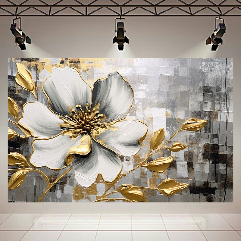 تابلو بوم طرح مخمل مدل برگ های طلایی مدرن کد AR30991