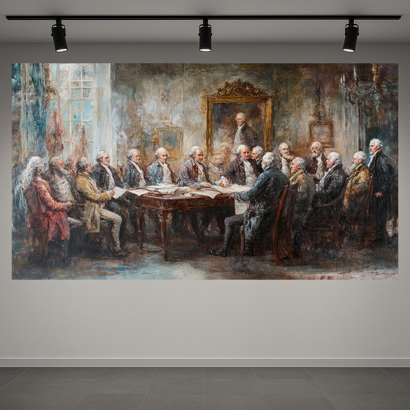 تابلو بوم طرح مخمل نقاشی تاریخی مدل جلسه قدیمی کد AR3059228