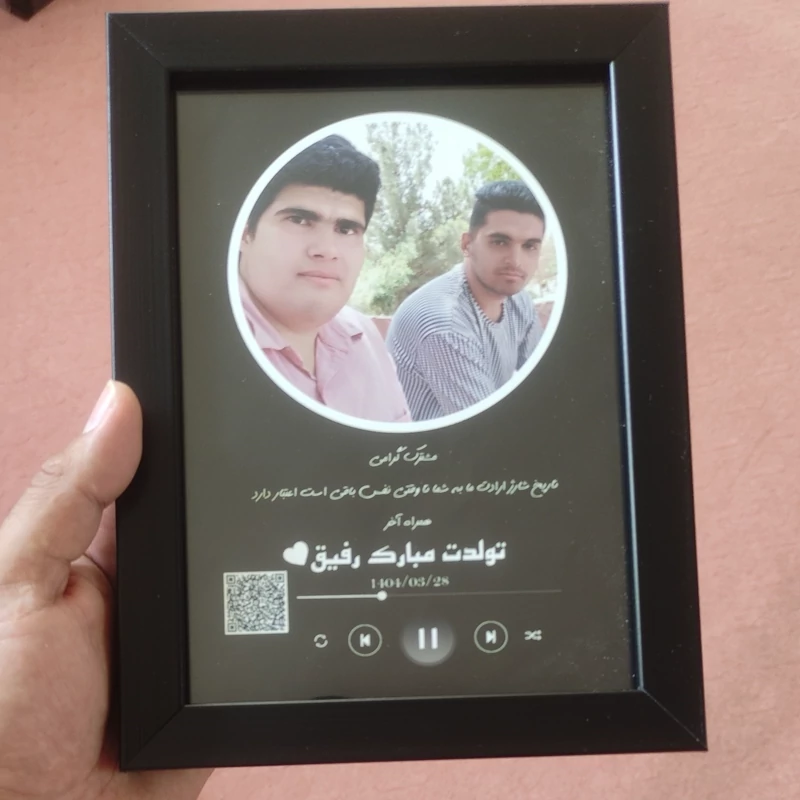 کافیست عکس، موزیک و متن دلخواه خود را برای ما ارسال کنید تا یک قاب زیبا با قیمت فوق العاده درب منزل تحویل بگیرید.