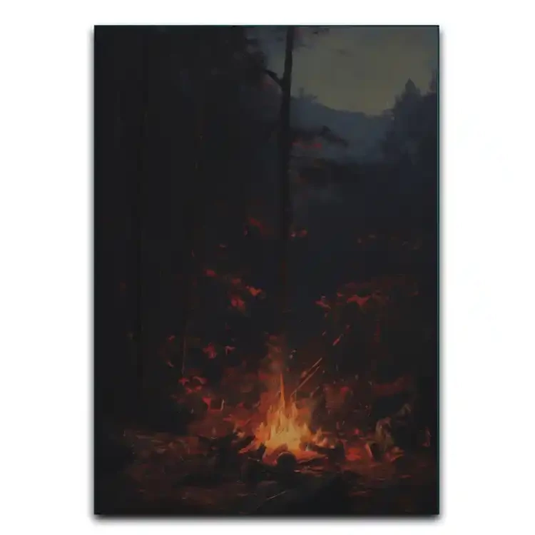 تابلو آتش در تاریکی شب – جادوی نور و سکوت شب
