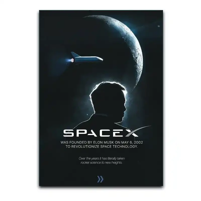 🔥 چرا تابلو اسپیس ایکس خاص است؟چون تنها یک تابلو نیست؛ نماد رویای پرواز انسان به ورای زمین است. تصویری از تلاش و جسارت برای رسیدن به ستارهها، که هر روز یادآور میشود هیچ مرزی برای تخیل و پیشرفت وجود ندارد. 🌍➡️🌙