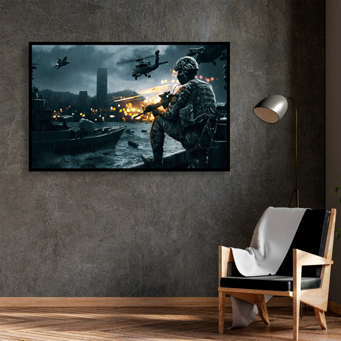 قاب یا فریم این تابلو از جنس پی وی سی می باشد.و شما می توانید آن را بر روی دیوار نصب نمایید؛ ضخامت این تابلو 5 سانتیمتر است.و از دیوار به همین اندازه فاصله می گیرد.منبع تغذیه برق این تابلو از برق مستقیم 220 ولت شهری می باشد که از سیم برقی به طول یک ونیم متر,در آن استفاده شده است که شما میتوانید آن را به پریز برق وصل نمایید.نورپردازی این تابلو با ال ای دی های خطی,که با توجه به نیاز عکس و همگام با آن چیدمان شداند روشن می گردد؛که زیبایی دو چندانی را به تابلو شما می بخشد.وهمچنین میتوان تابلو را بدون استفاده از نور بر روی دیوار نصب کرد.به صورتی که جلوه خود را به عنوان یک تابلو ساده حفظ می نماید