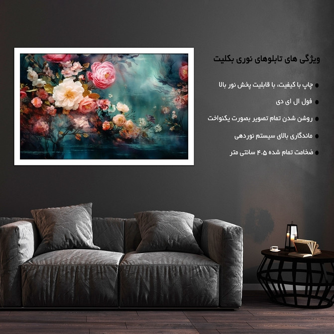تابلو نوری بکلیت طرح منظره طبیعت و گل رنگی مدل W-MID-17416