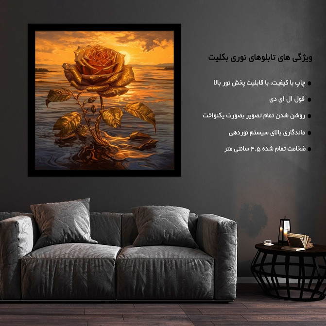 تابلو نوری بکلیت طرح مدرن گل طلایی مدل B-MID-19301