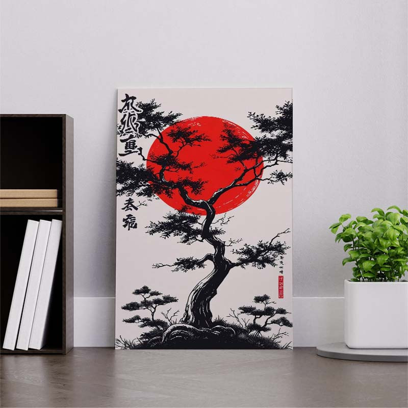 تابلو شاسی کارنیکا طرح نقاشی ژاپنی کد 50302 مجموعه 4 عددی